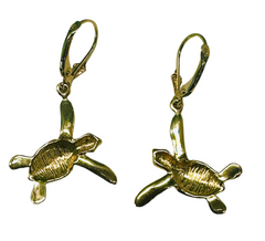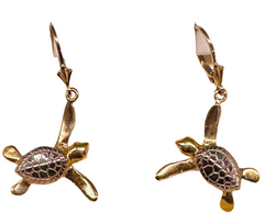 14k Gold 2-tone Turtle Dangle Earrings.