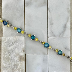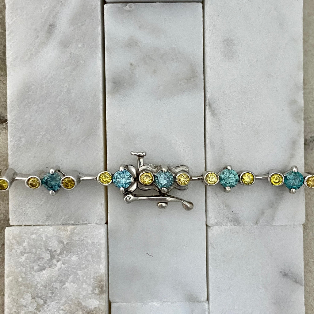 14k White Gold Blue And Yellow Diamonds 2.50cttw Bracelet 7 1/4”