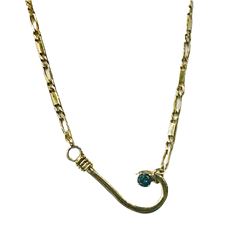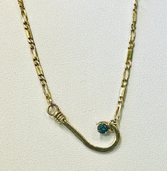 14k Yellow Gold Hook with Blue Diamond Necklace.