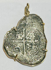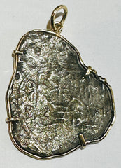 Encased in a finely crafted 14k gold bezel, this genuine 8 Reales Spanish Cob Coin from the Concepcion shipwreck embodies a remarkable slice of Spanish heritage. Merging precious metal elegance with a rare artifact, it delivers lasting beauty and a powerful link to history. Ideal for collectors or as a one-of-a-kind gift, this piece combines skilled artistry with deep cultural meaning, making it a captivating highlight in any jewelry collection or treasure trove.