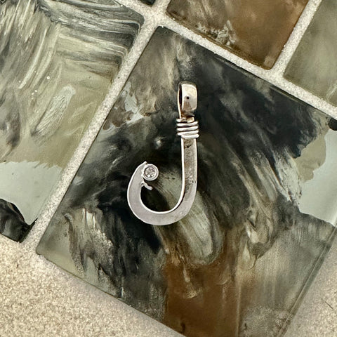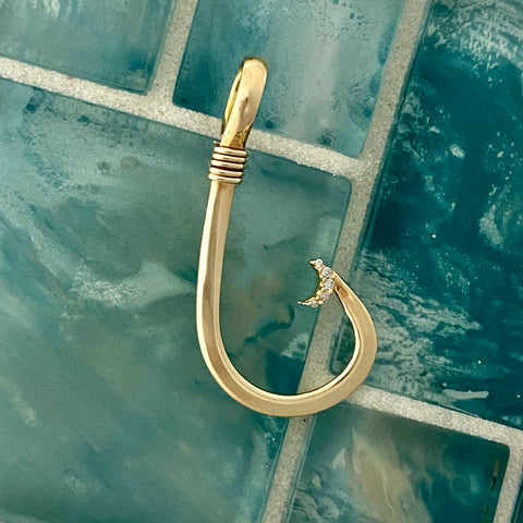 His line of fish hook jewelry includes pendants, cuff bracelets, and earrings set in silver & gold and accented with diamonds. He forges each work by melting, pulling, and curving his chosen metal to form a hook, making each piece entirely unique.