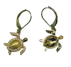 14k gold dangle sea turtle earrings with diamonds.