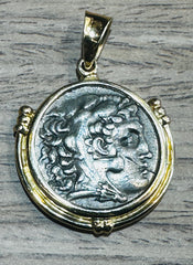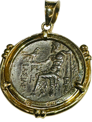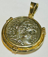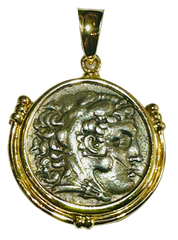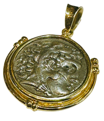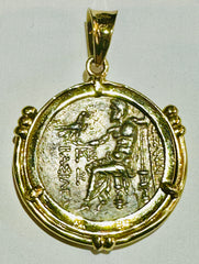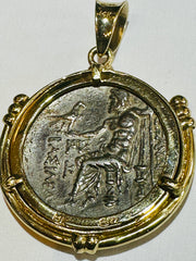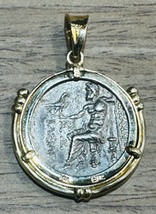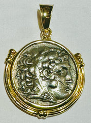 Alexander the Great Tetradrachm Coin 250-225 BC 14k Gold Bezel